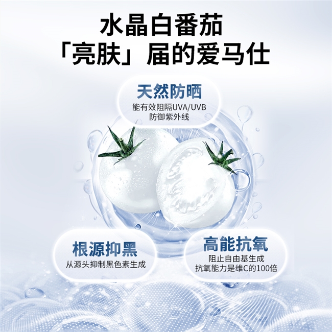 当然,经典烟酰胺也没闲着,它就像个恪尽职守的“交通警察”,专门拦截那些已经形成的黑色素,不让它们顺利跑到表皮层“搞破坏”。水晶白番茄负责“源头打击”,烟酰胺负责“中途拦截”,这一唱一和,形成了“抑制+阻断”的双保险,把黑色素安排得明明白白,让它们根本没机会在皮肤表面“扎堆”,美白效果自然又快又持久。