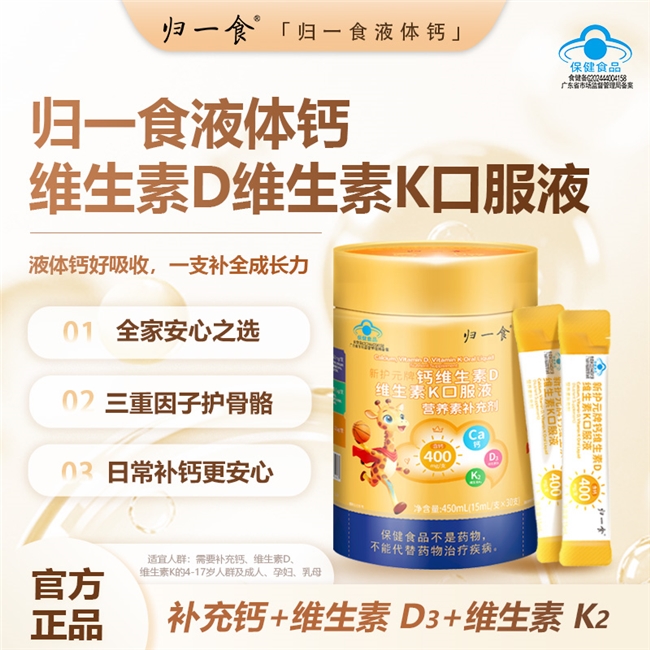 万千家庭的真实选择,是归一食效果的最佳注脚。杭州宝妈王女士分享:“孩子 5 岁体检发现乳房过早发育,骨密度偏低,医生提示有性早熟风险。之前试过两款单一 D3 滴剂,孩子要么抗拒味道,要么服用后腹胀便秘。换用归一食后,孩子爱上了甜橙味,每天主动要喝‘橙子水’,坚持 3 个月,早熟迹象逐渐消退;半年复查,骨密度恢复正常,身高还长了 5 厘米,吃饭也不挑食了,身边好多宝妈都被我种草,预防效果是真的看得见!”